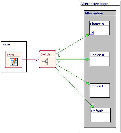 The following figure shows a sample Web model using the Switch Unit with many outgoing OK link, with a default one.